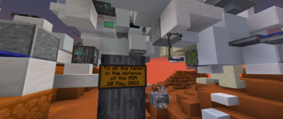 It was not all gloom in this period, however, as things began to turn around with the Coalition Against Piracy and Amcar's peak. Many more people had joined the nation and Amcar was able to establish numerous outposts and settlements across the sector, even seeing success in inviting the industrialized and experienced Apollo settlement to the nation. One large turning point was on August 16, 2022 when the Amcaran's finally found their footing once more. During a regular build session on the server, much of the nation was online working when Detreus forces arrived and began bombing the Amcar settlement. Rather than hiding as they had previously, the Amcaran forces present, although caught off-guard, scrambled fighters and were able to repel the attack with help from experienced players without suffering major losses. It was the first semblance of victory for the nation and they reveled in it. Over the next few months, Amcar would begin conducting more offensive and defensive missions with help from the CAP. Unfortunately this would not last.
