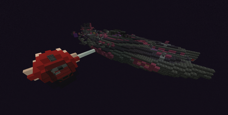 The wreck of an Aetna-class Corvette being towed by a small shuttle.
