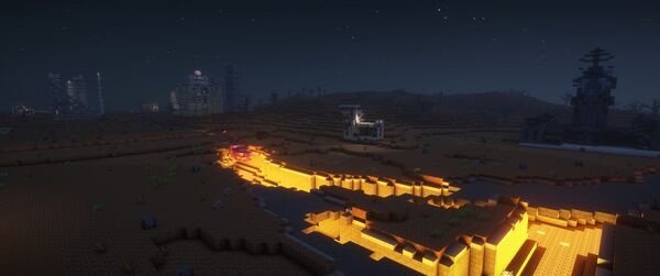 Hegemony is a Trade City in the north of Qatra, owned by Vega and led by Solesey. Employing an industrial, vertical building style, Hegemony is raised high above the terrain of Qatra on a series of pillars, and employs decommissioned starships as elements of the city. It is one of twelve safezones on the server.
