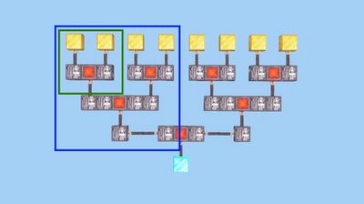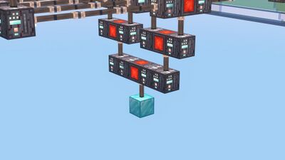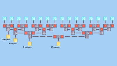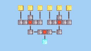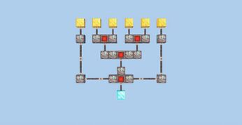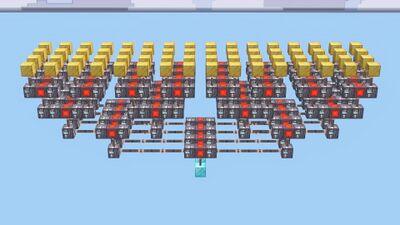 • (The Redstone Blocks here are only to show where the power splits - I suggest that you replace those with sponges, as they work just the same, and are cheaper)*